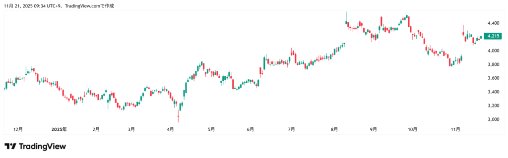 株価 (11/21) 4,215円