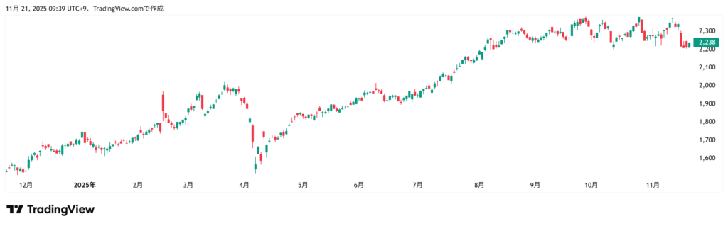 株価 (11/21) 2238円