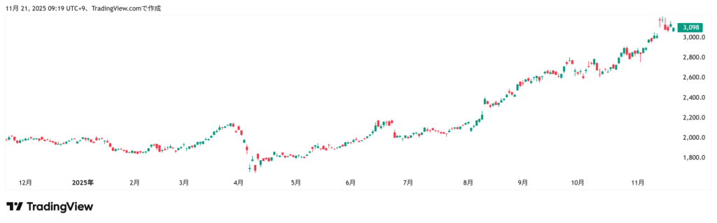 株価 (11/21) 3098円