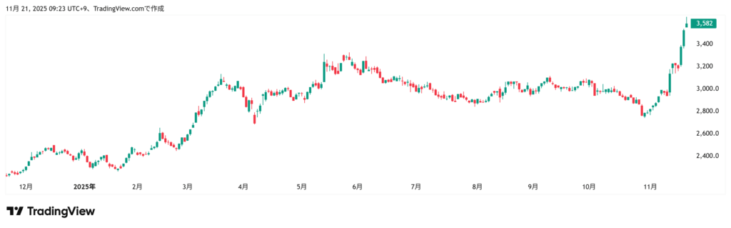 株価 (11/21) 3582円
