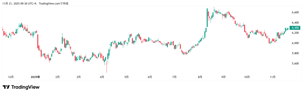 株価 (11/21) 6300円